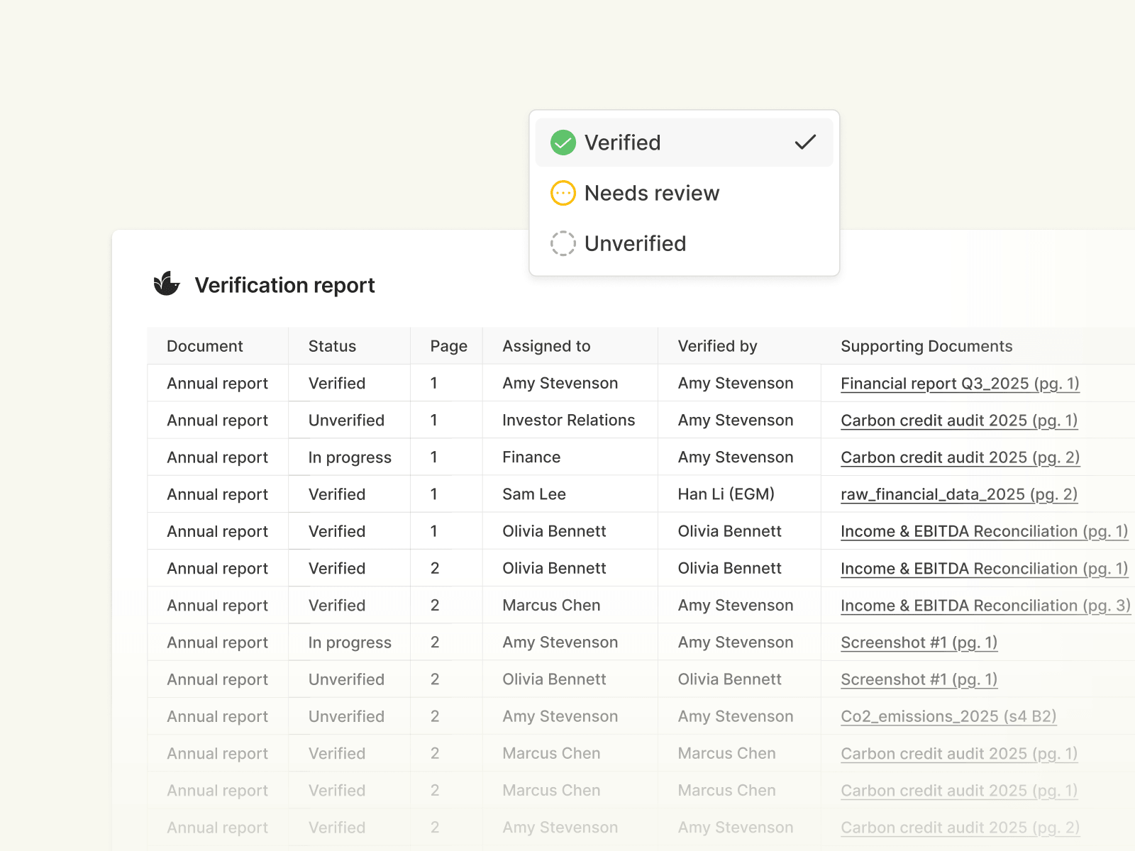Link statements and figures to evidence. Create an audit trail you can trust.